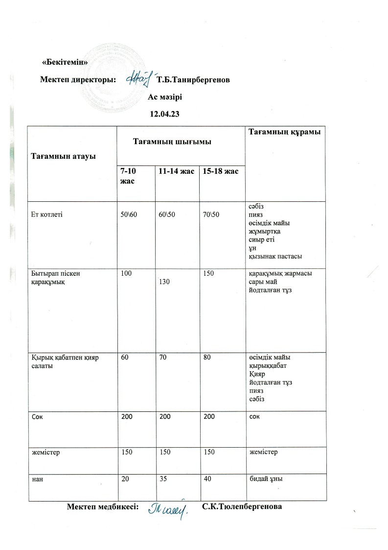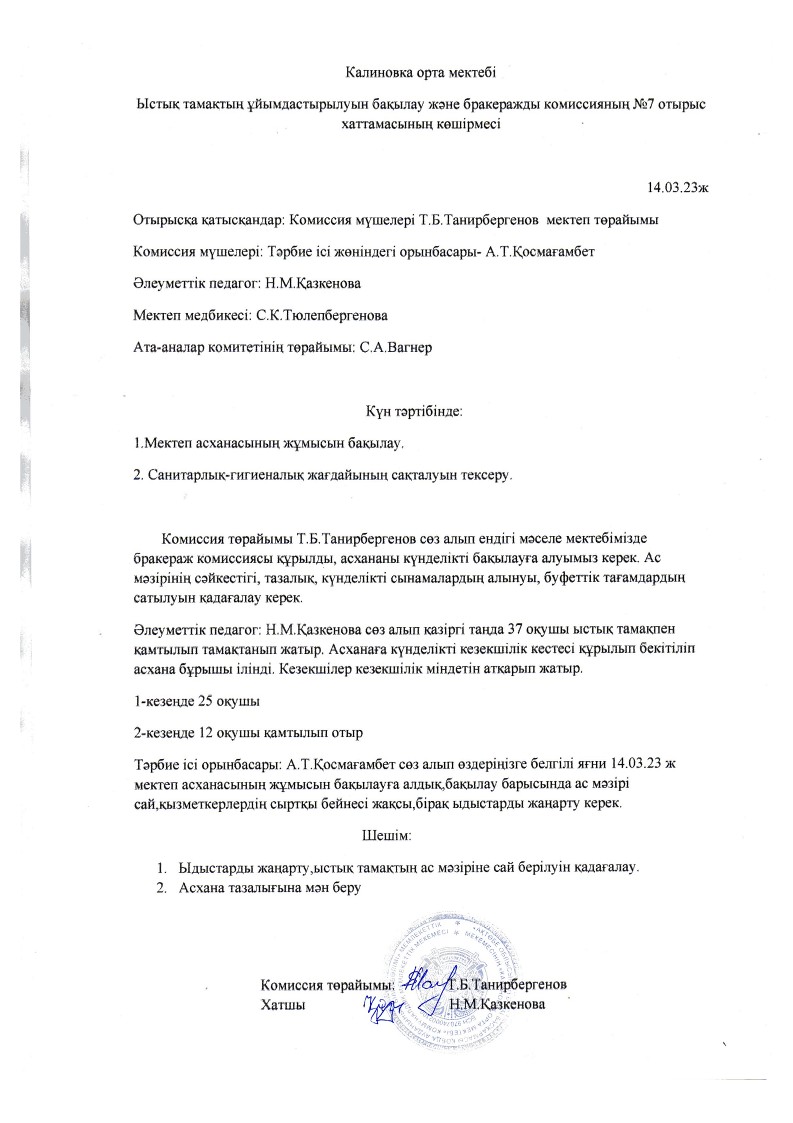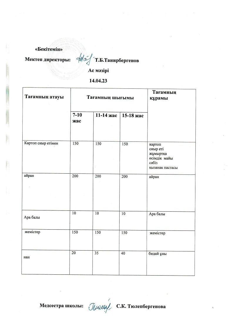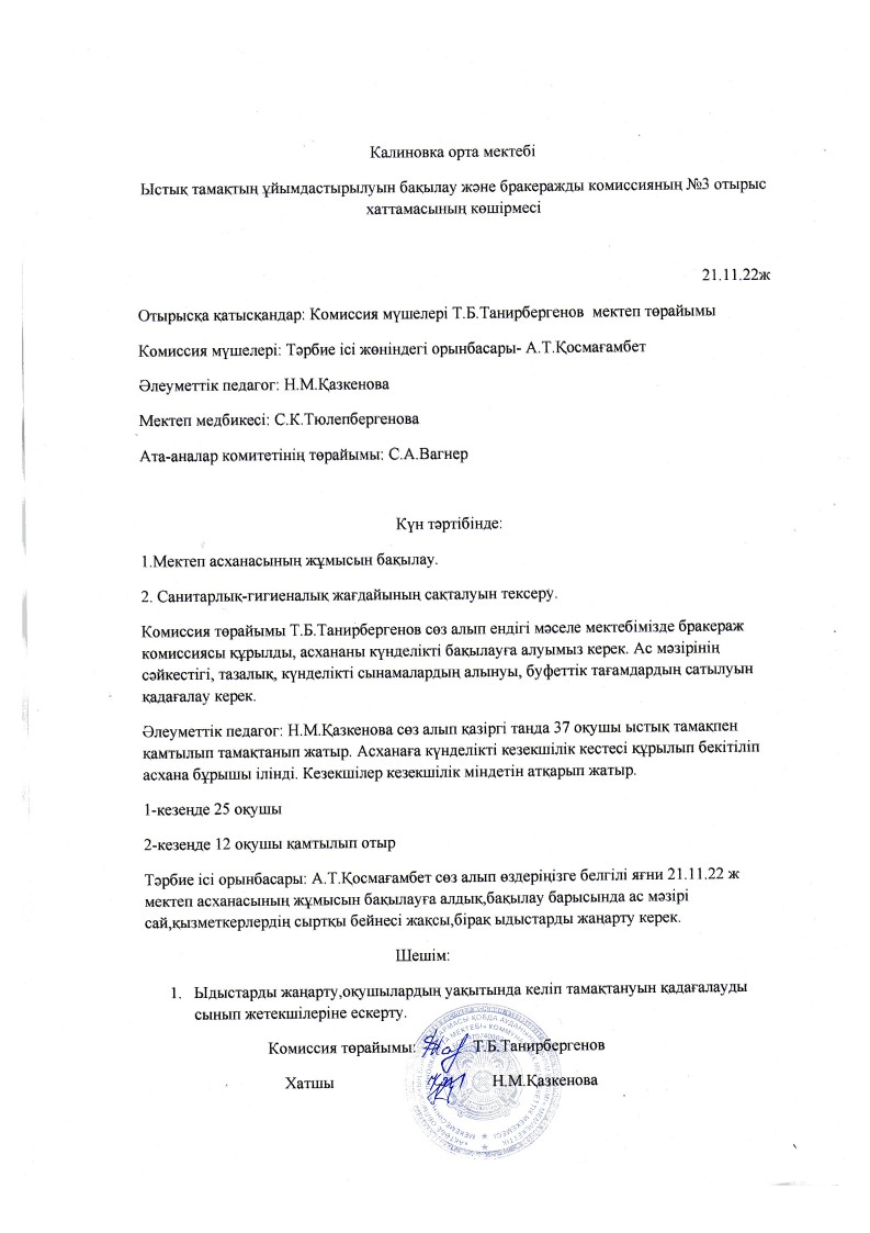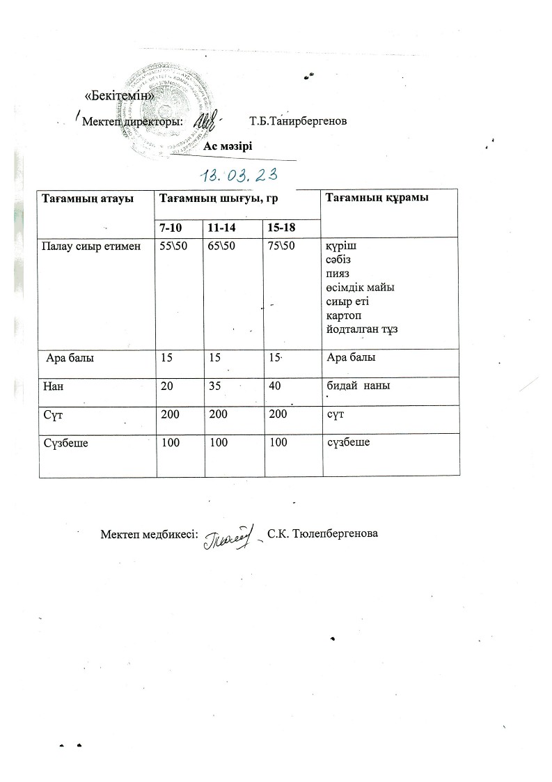 Ыстық тамақтандыруды ұйымдастыру 2022-2023ж