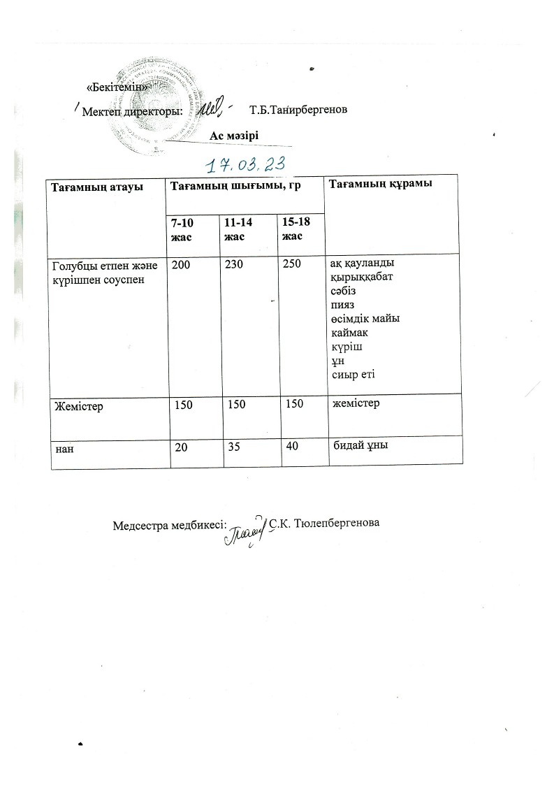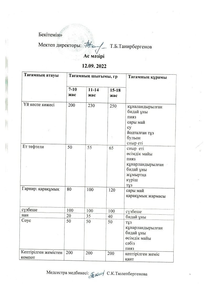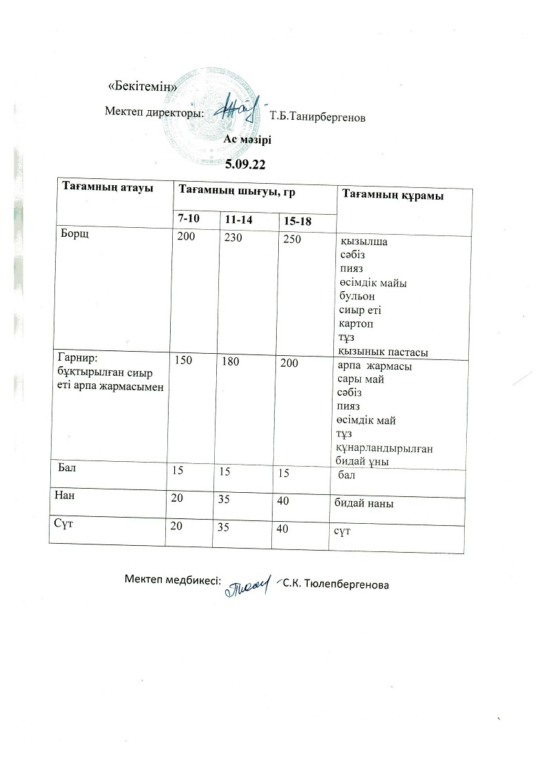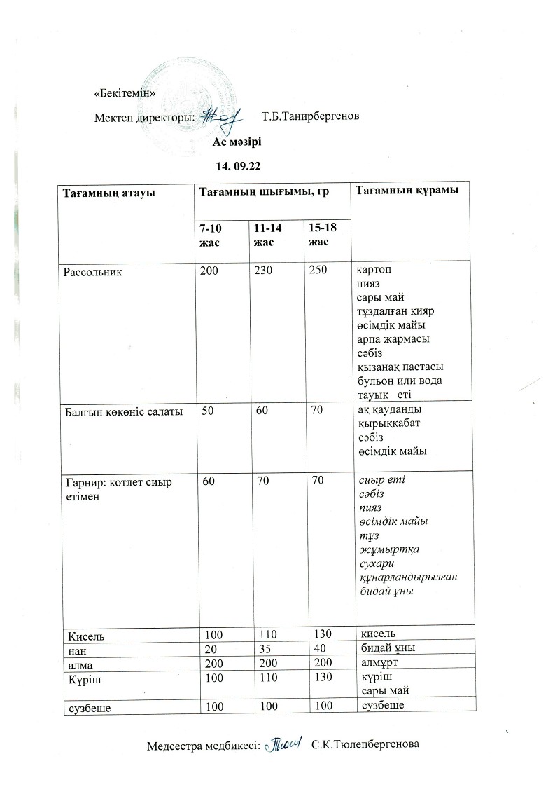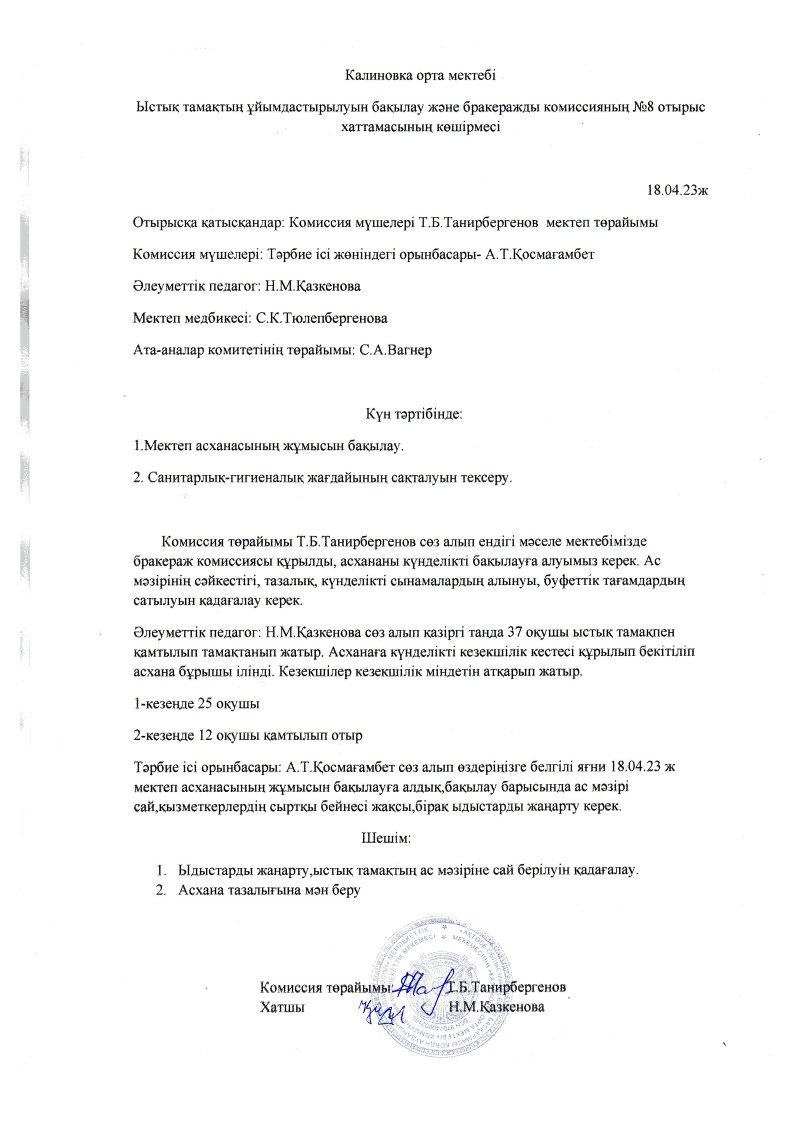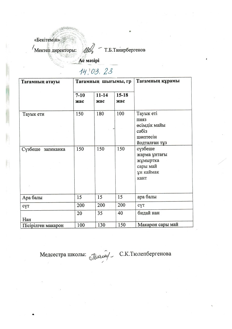 Ыстық тамақтандыруды ұйымдастыру 2022-2023ж