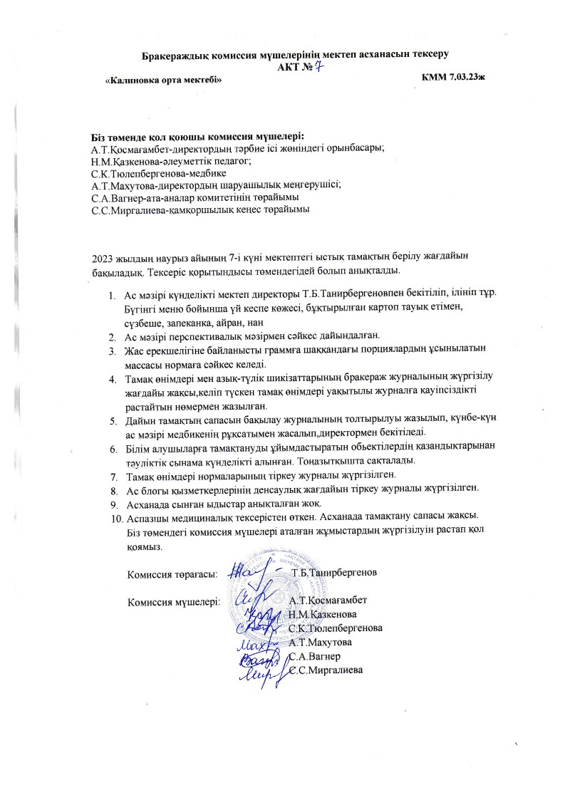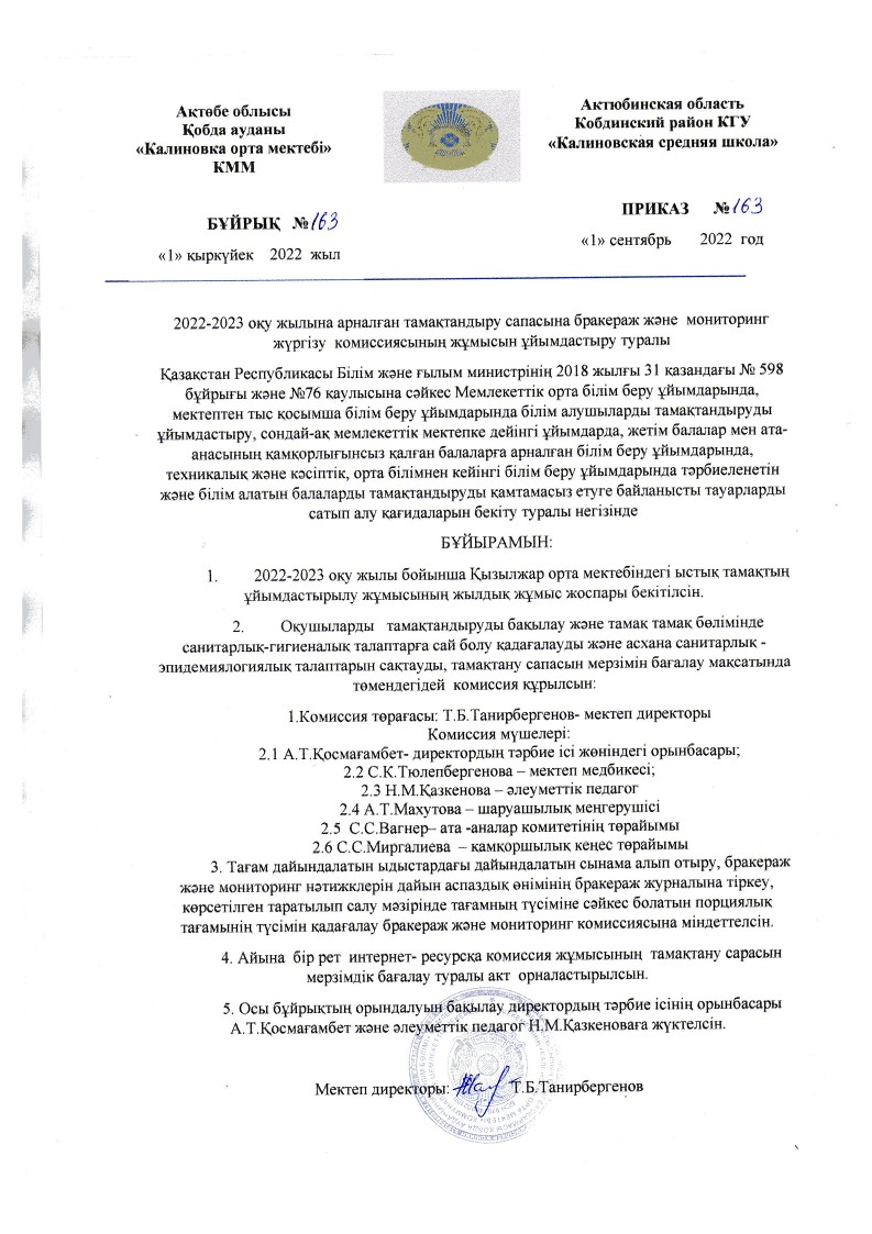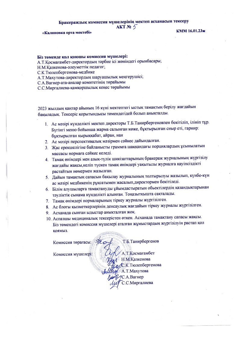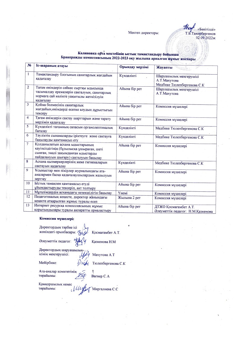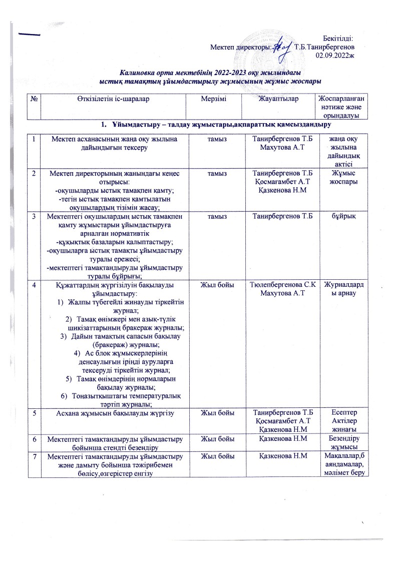 Ыстық тамақтандыруды ұйымдастыру 2022-2023ж
