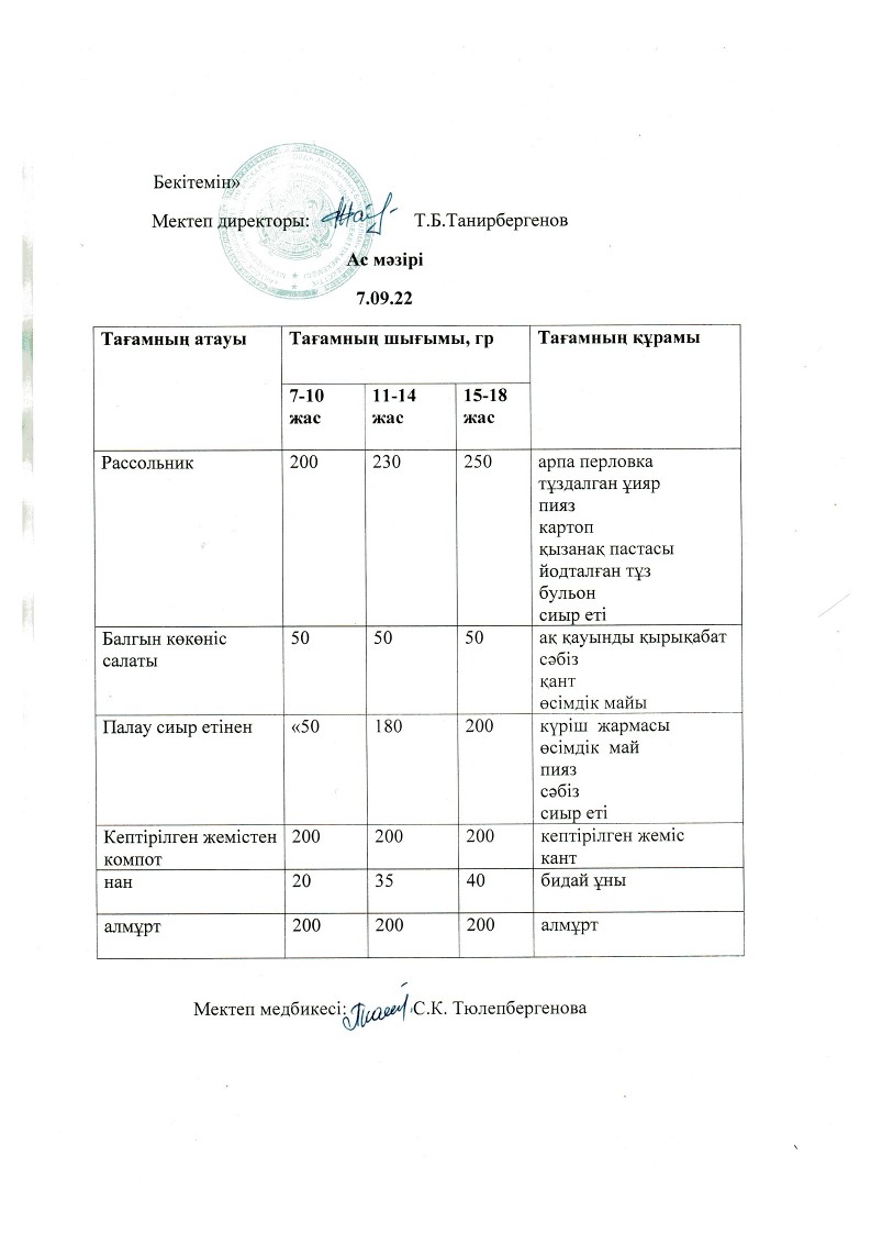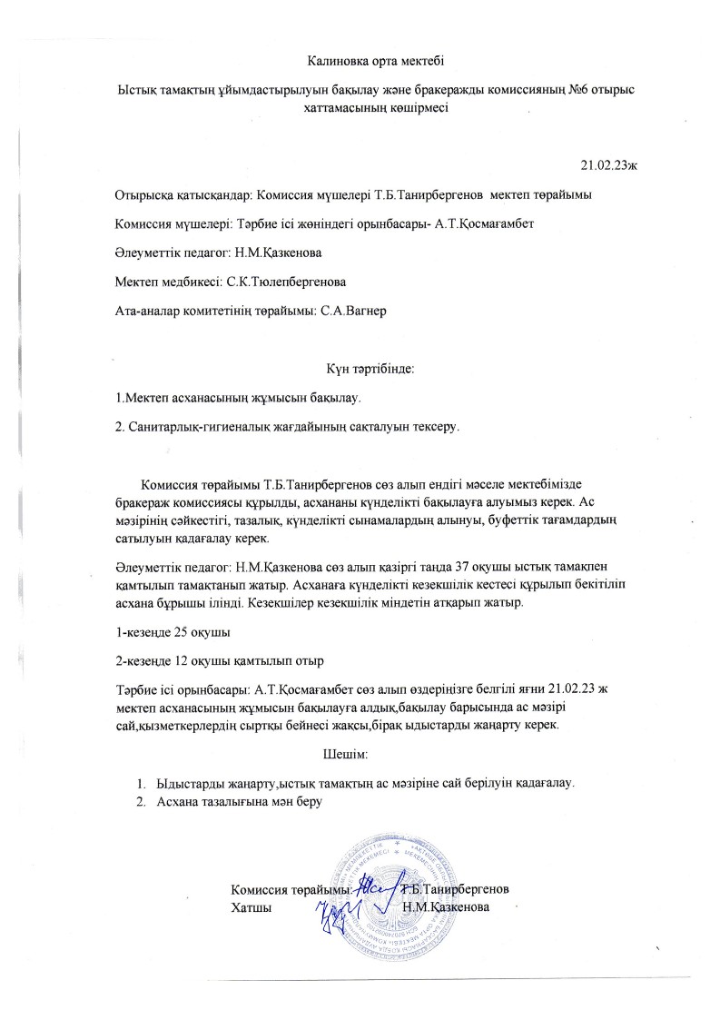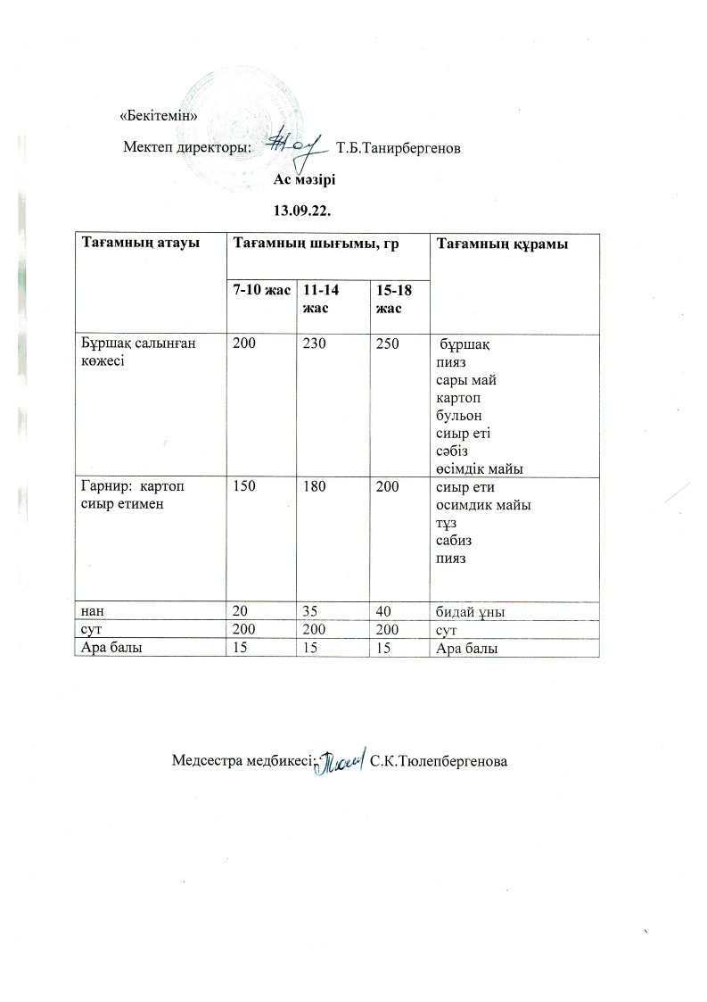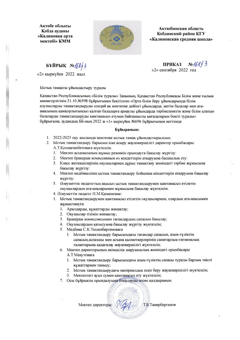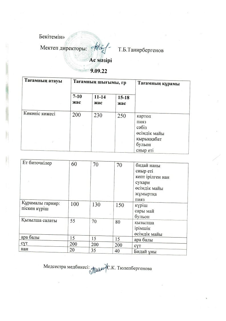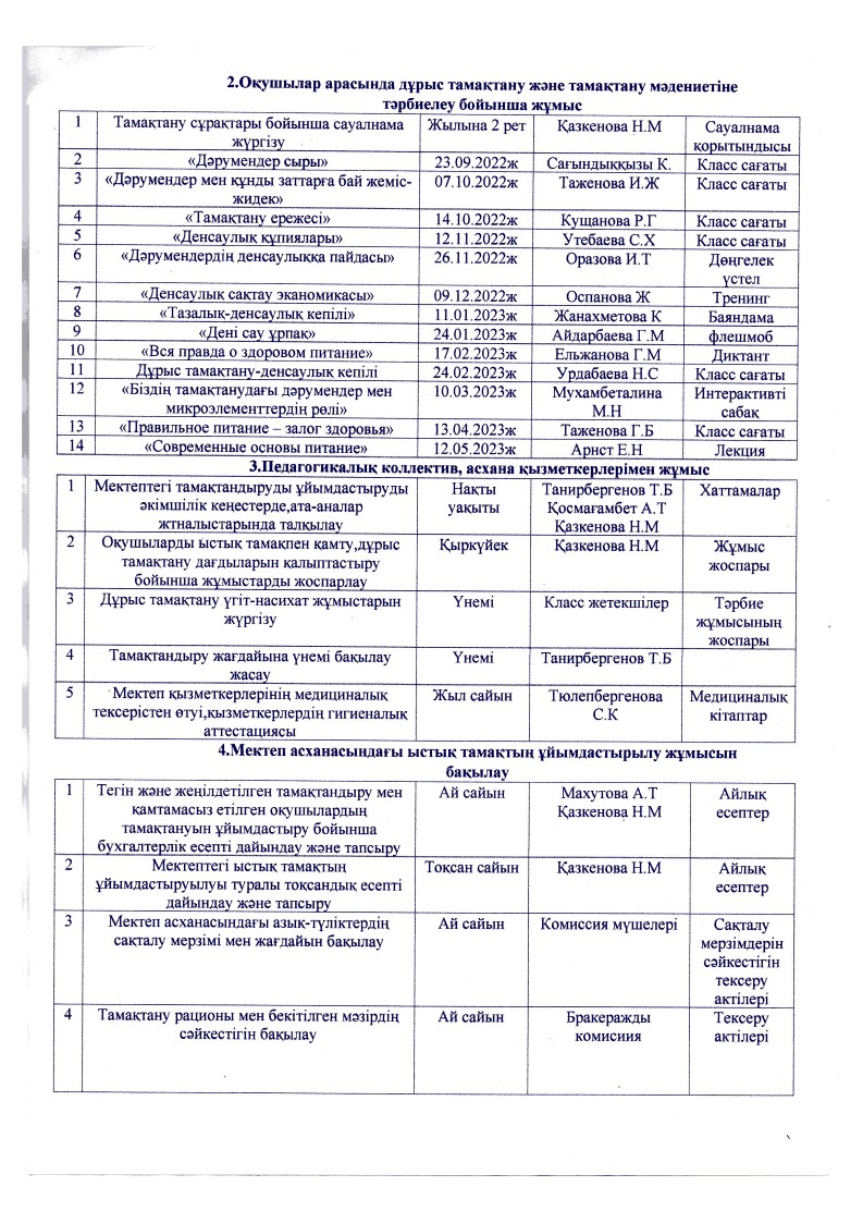 Ыстық тамақтандыруды ұйымдастыру 2022-2023ж