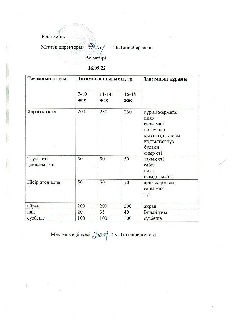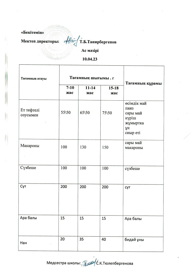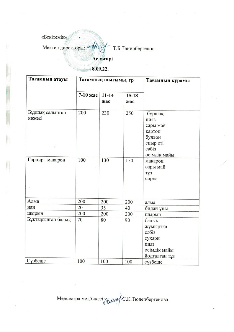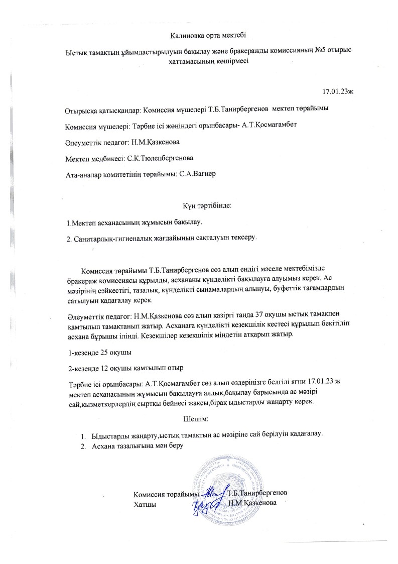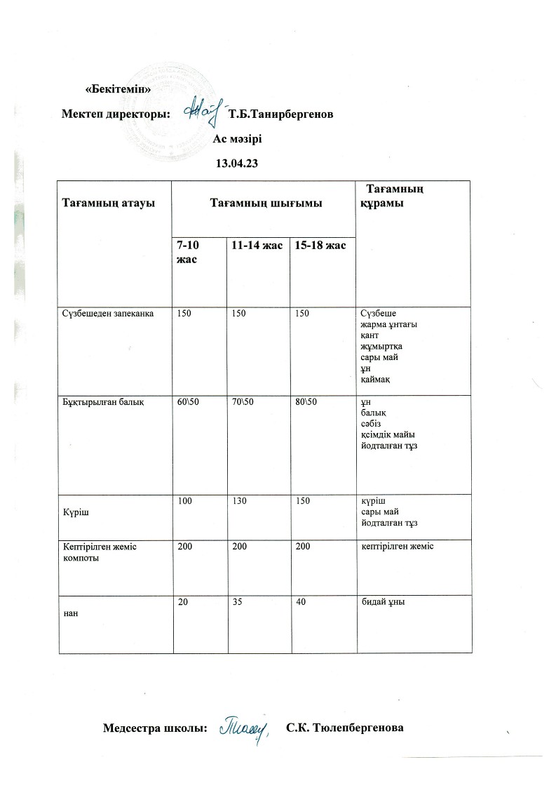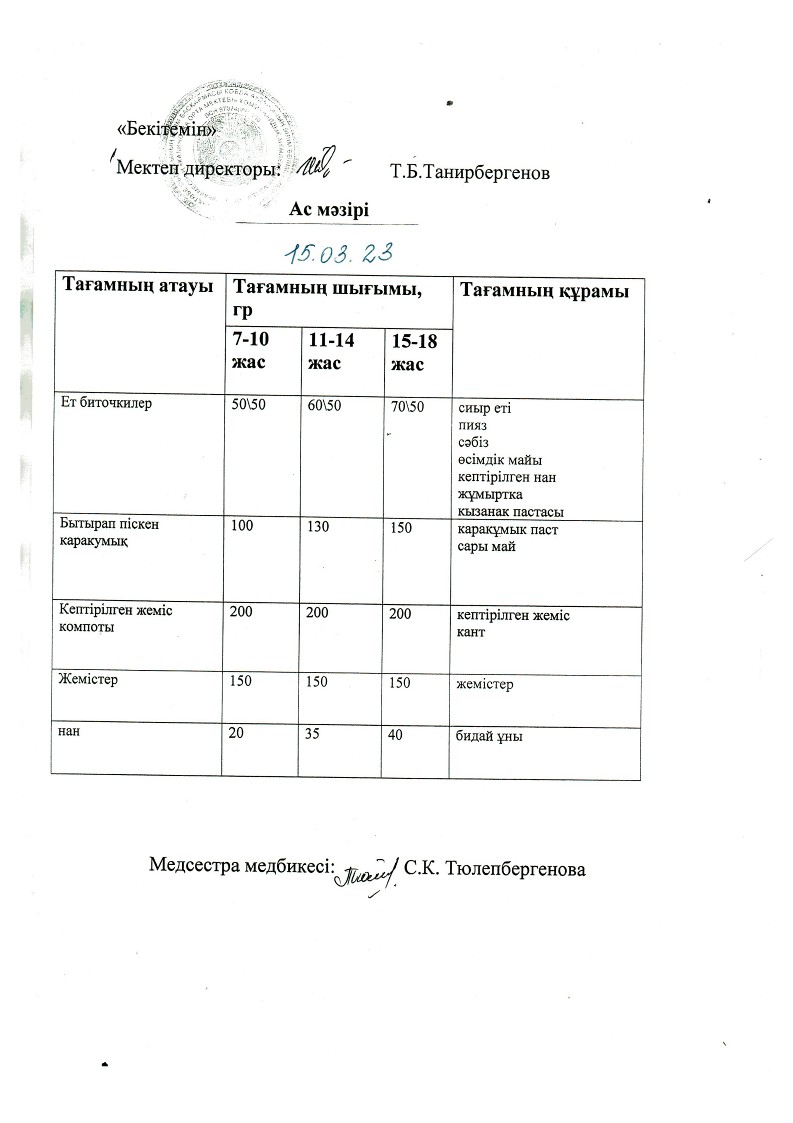 Ыстық тамақтандыруды ұйымдастыру 2022-2023ж