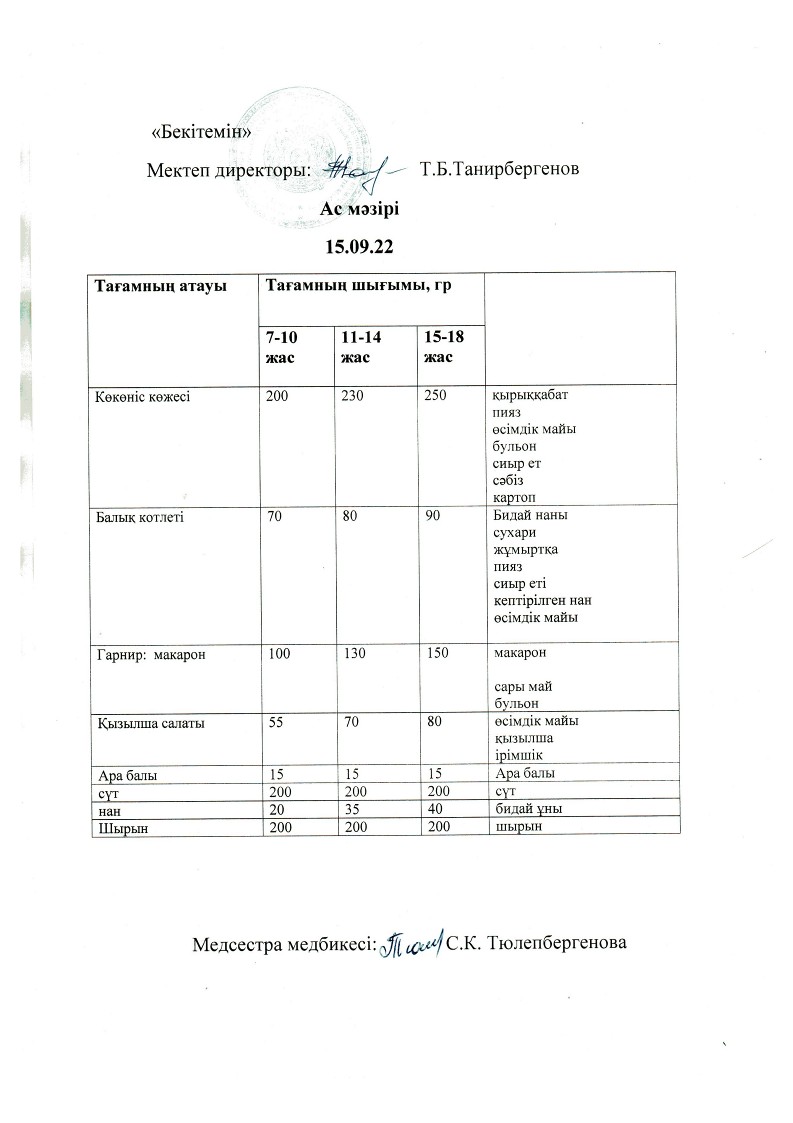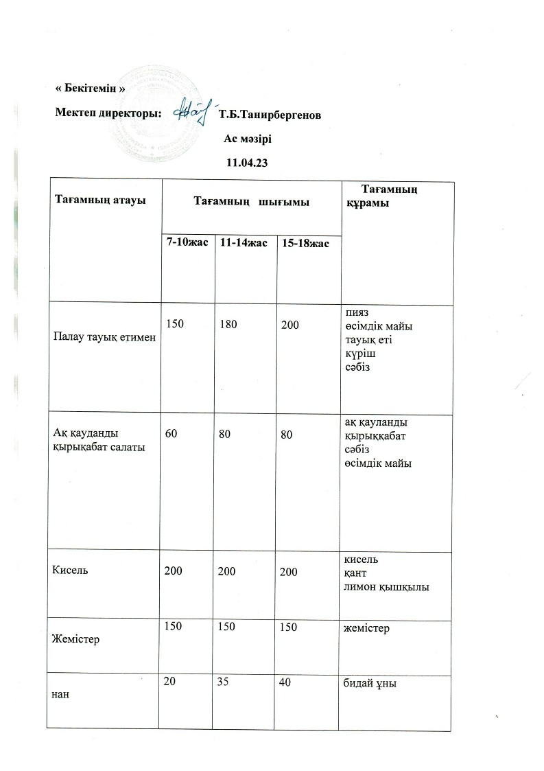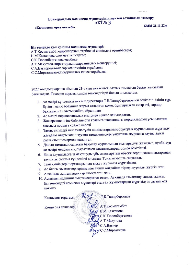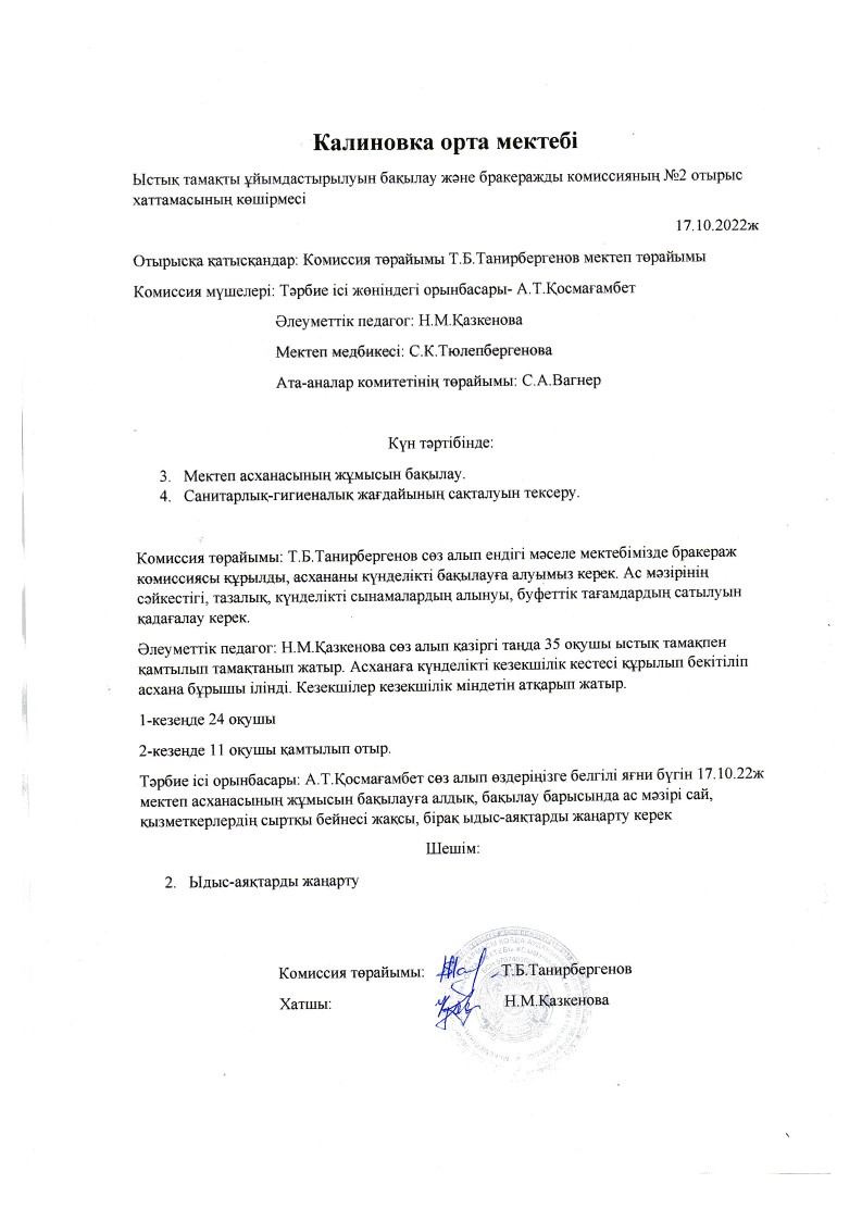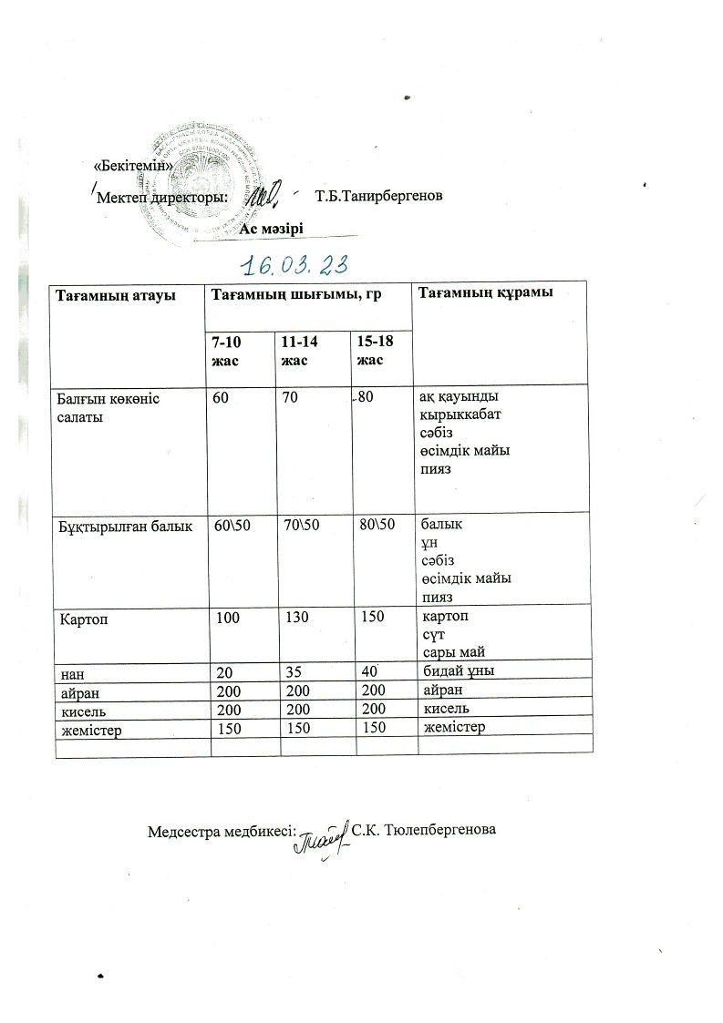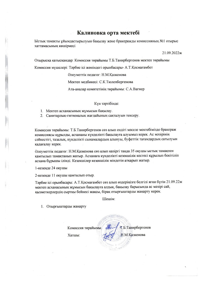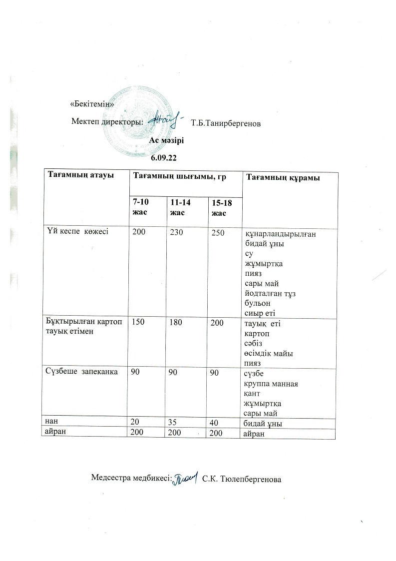 Ыстық тамақтандыруды ұйымдастыру 2022-2023ж