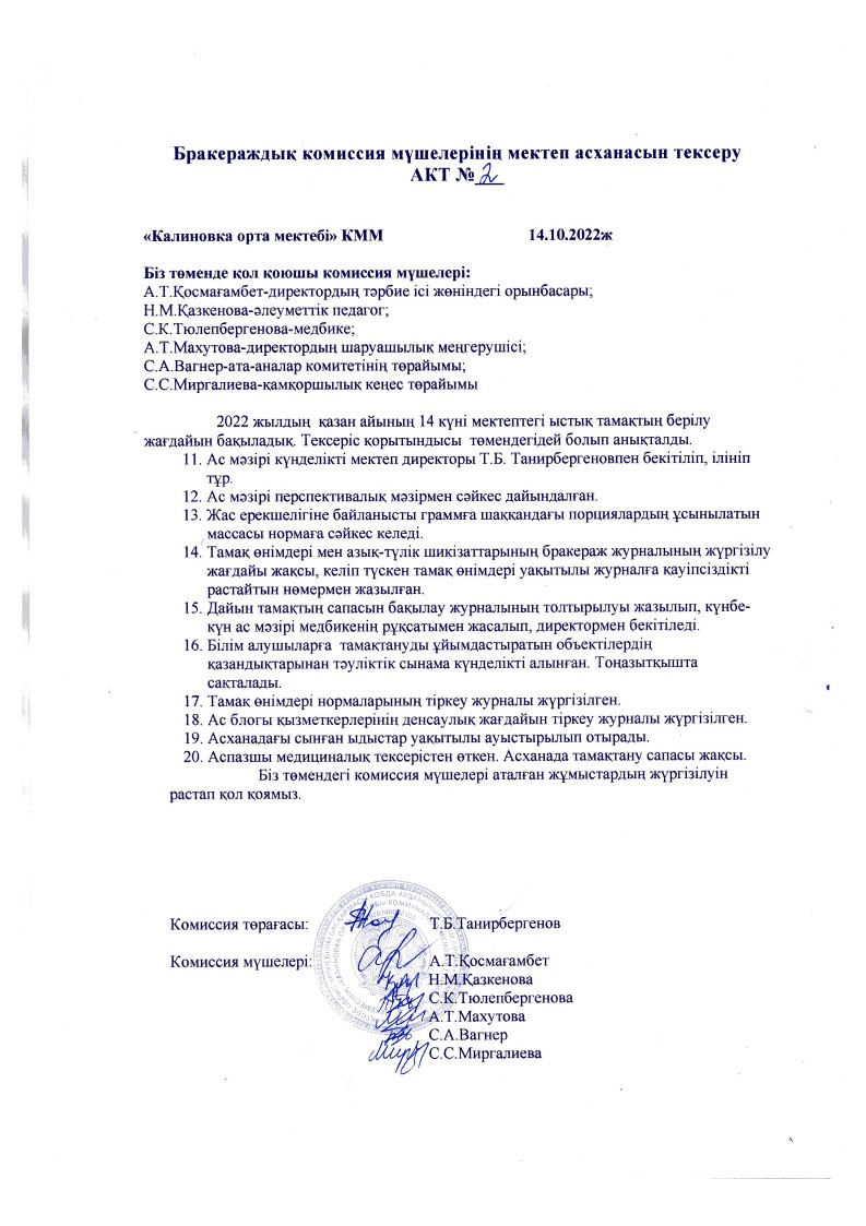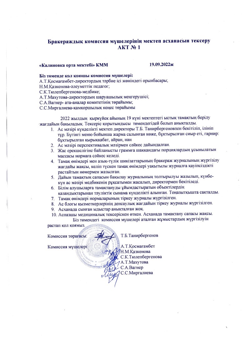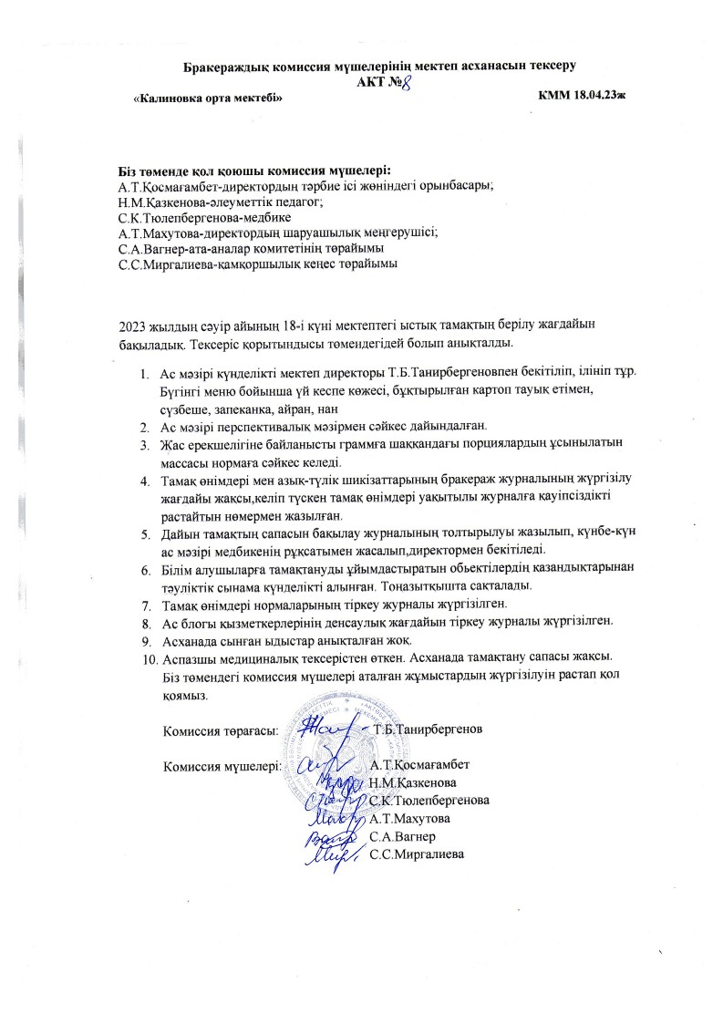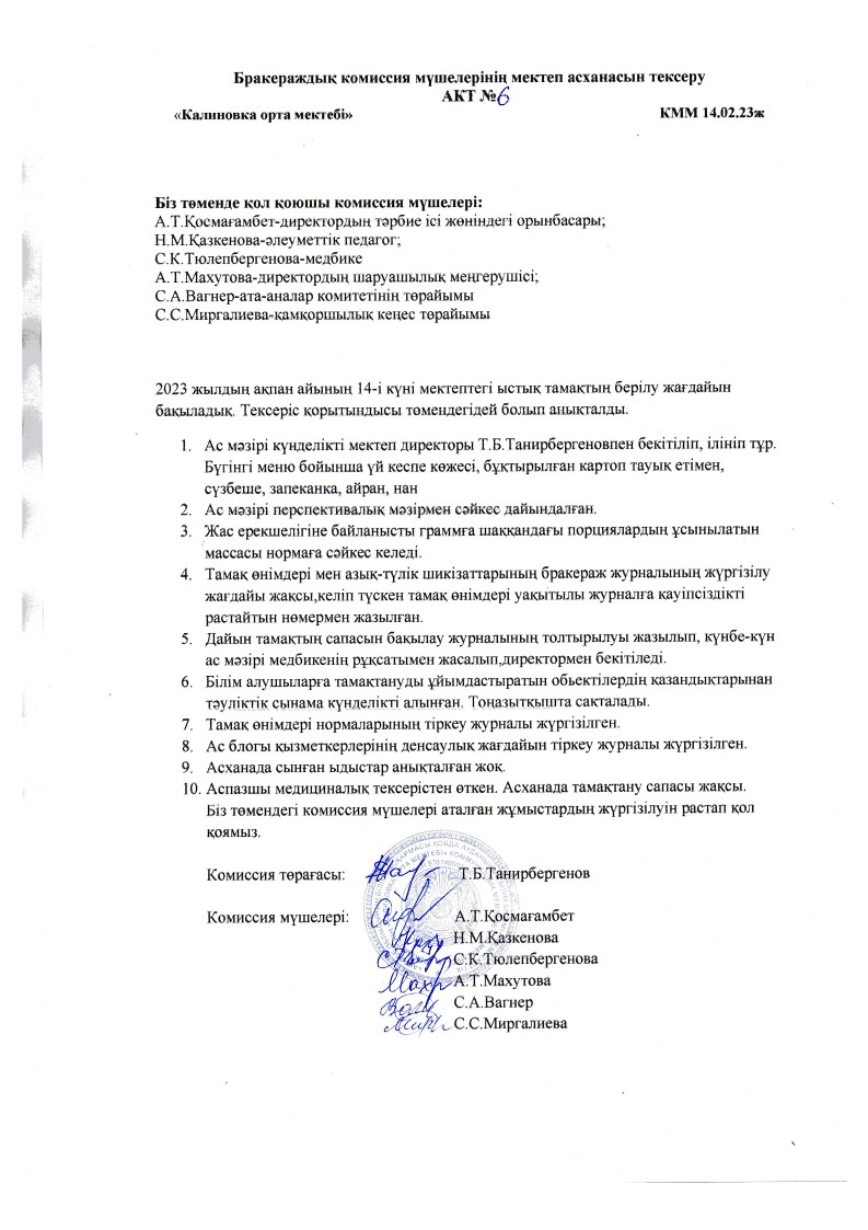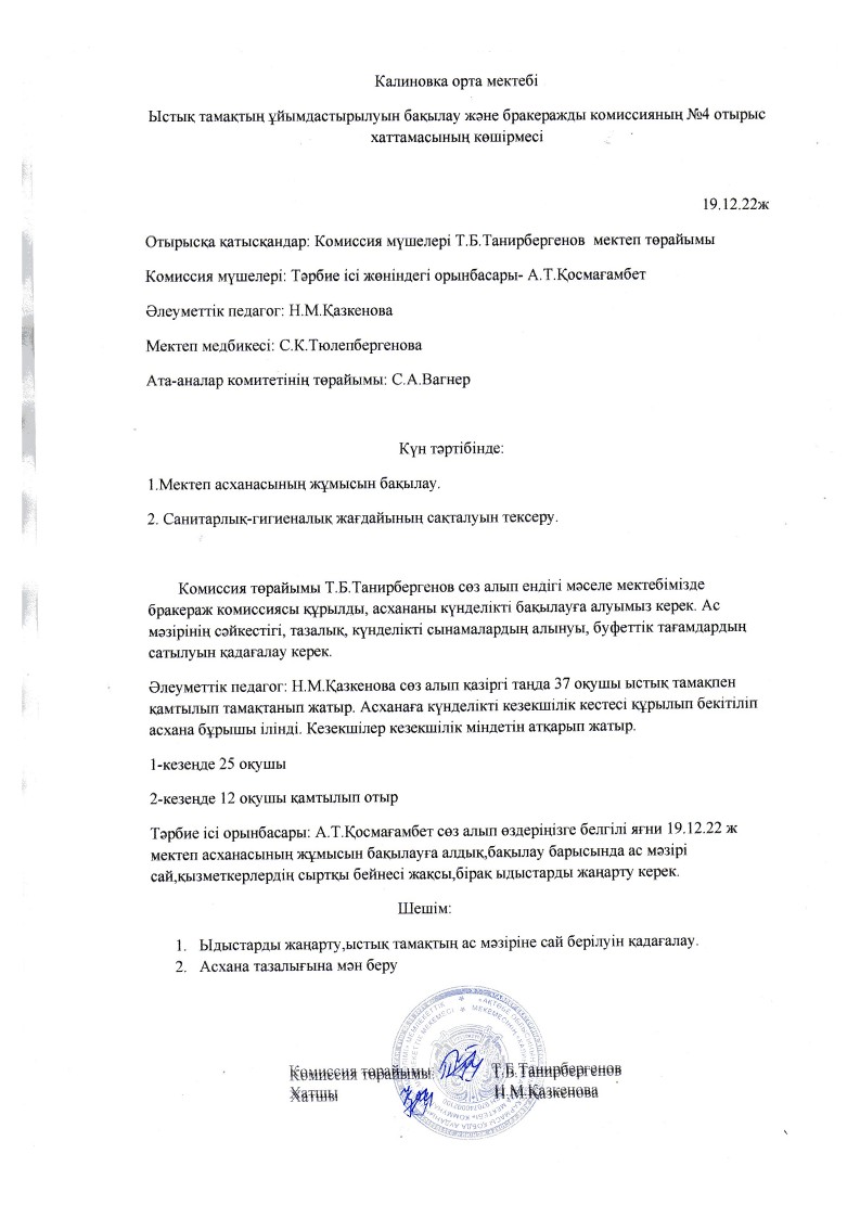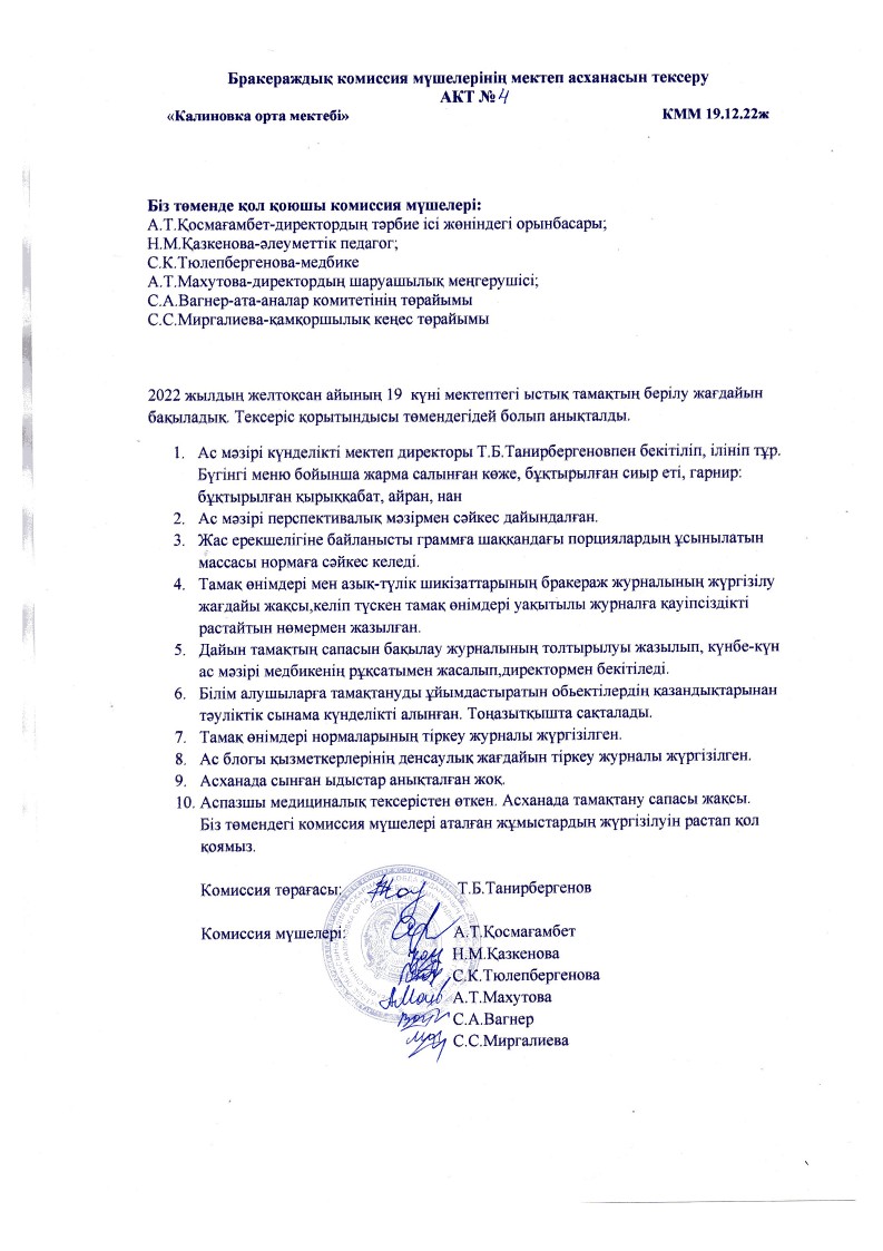 Ыстық тамақтандыруды ұйымдастыру 2022-2023ж